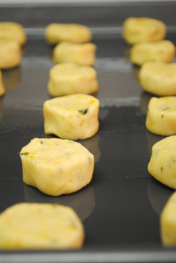 7. Slice logs into 1/3″ wide rounds. Place on parchment lined cookie sheets and bake for 15 minutes or until the bottoms are golden brown. Transfer to racks to cool. Tip: I was watching the Barefoot Contessa on Tuesday, and she did an entire show on cookies (it was meant to be, really!). The Barefoot Contessa says to place your cookies in the center of your oven and then rotate them half way through the baking process.