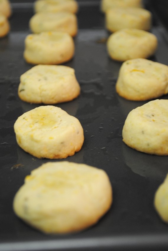 Last Wednesday I baked a batch of cookies for a friend as a thank you gift. I made Lemon Rosemary Butter cookies! YUM! I got the recipe in June when I met Kim Dolce of Dolce Handknits at TNNA in Columbus. Kim was handing out these little morsels of goodness to pretty much anyone with a smile.