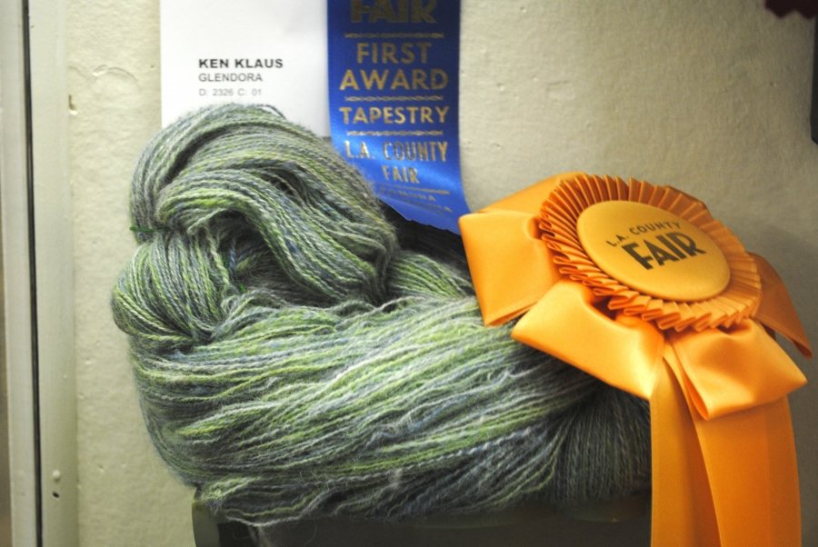 I also came across Best in Show for spinning by Ken Klaus from Glendora. I’m not sure what the fiber content of the yarn is but it looked like some sort of coarse wool.