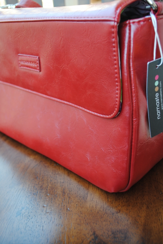 Back in June I attended a designer’s dinner at TNNA in Columbus, OH. There was all kinds of swag passed out, most of which I gave to a friend (that I met on my trip to Italy) who happens to live in Columbus. But there was something so fantastic about the color of this bag that I just couldn’t part with it very easily. I thought that someday it will make a great give-a-way for my blog. Well that day has come, here it is, the Bitty Bag from Namaste Inc. in the color Red.