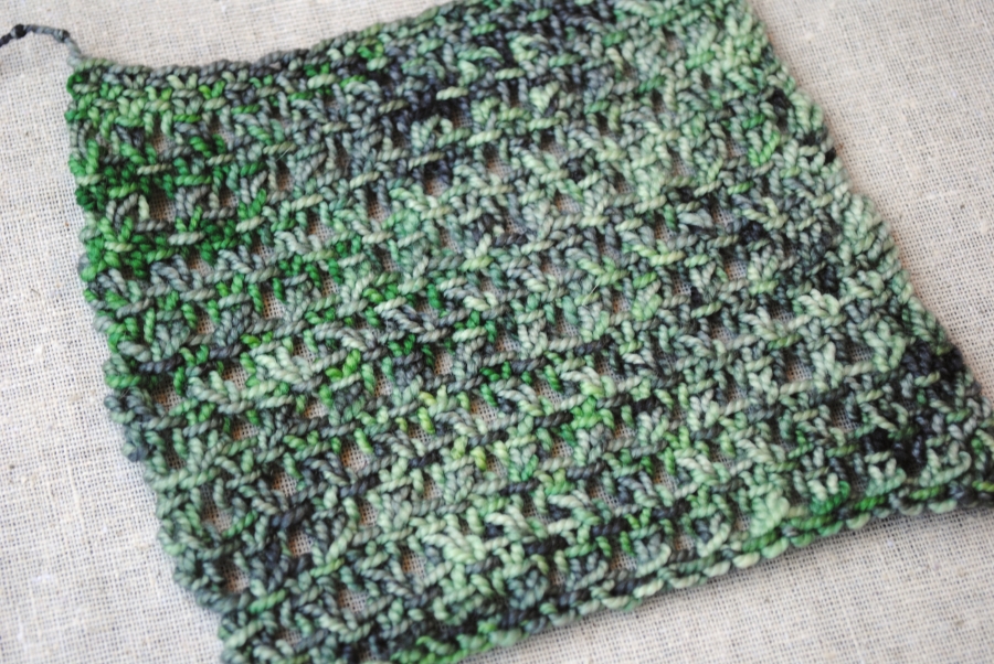 I have been curious to see if this stitch pattern can hold up to a variegated yarn. Here I have swatched up another one of my favorite yarns Koigu KPPPM (KPM will work too). This is a very classic yarn with a classic fiber content, 100% merino wool, that’s it! Love this stuff!!!