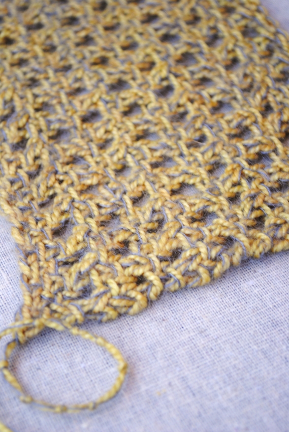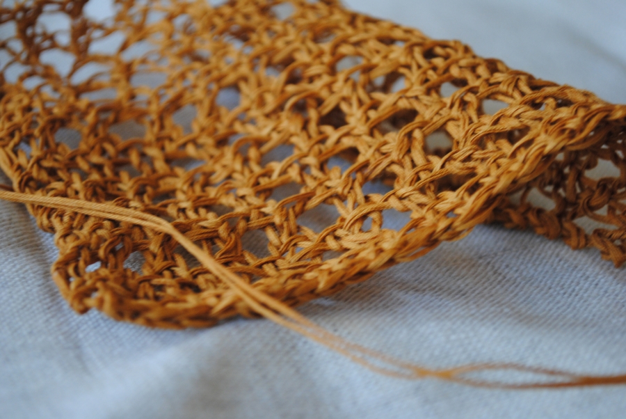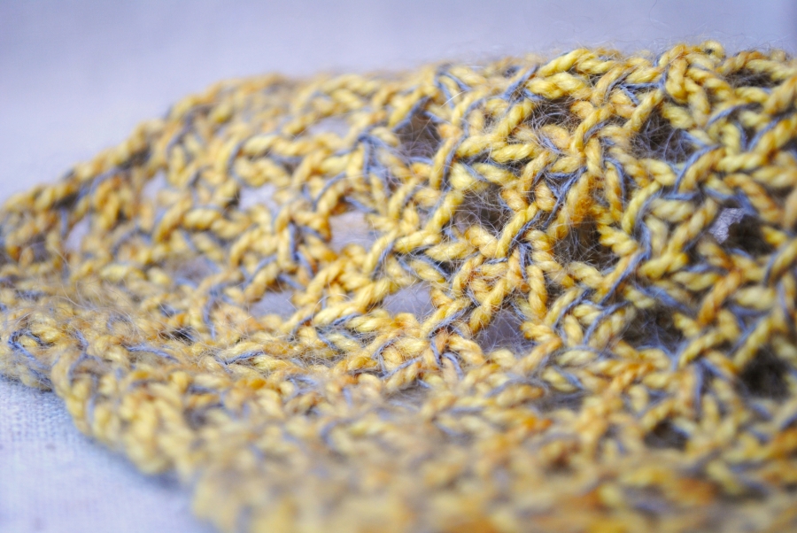 After swatching all these great yarns I wanted to to have one more swatch suggestion…. but it couldn’t be just another yarn. It had to be something special…. I wanted Oooooos and Aaaaaaas! So I searched far and wide (within my stash) and came up with SweetGeorgia Silk Crush (50% silk, 50% merino wool) and Habu Silk Mohair (60% mohair, 40% silk) in my favorite color combo- Grellow!. Wow what a combo! I think it is gorgeous, but I’ll let you decide for yourself.