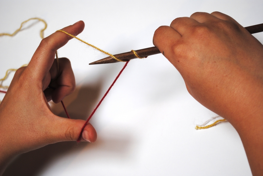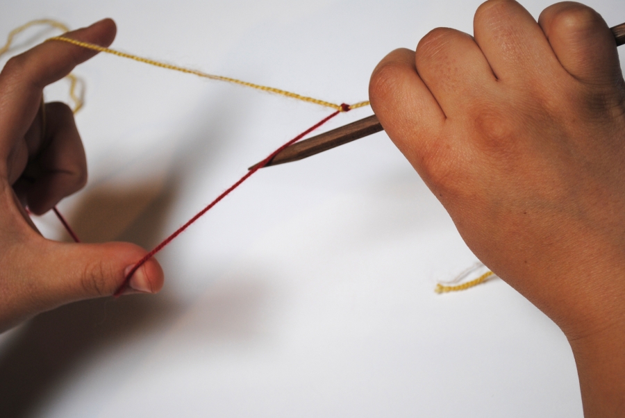 - With your working yarn, work a yo stitch onto your needle (in the usual way)*