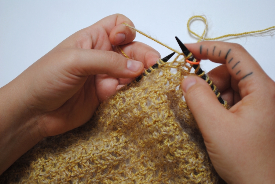 The next thing to keep in mind is that if you generally tend to bind off tightly then you want to go up a needle size if you are on a lace row, if you are on row 3 or 7 then you want to go up about 2-3 needle sizes. Don’t try to control your tension by knitting really really loose for this section. It is almost impossible to control your tension especially when learning something new and when you are comfortable with your work – so when is it possible to control your tension? Almost never. You want to make sure that your arm fits into your armhole, right?