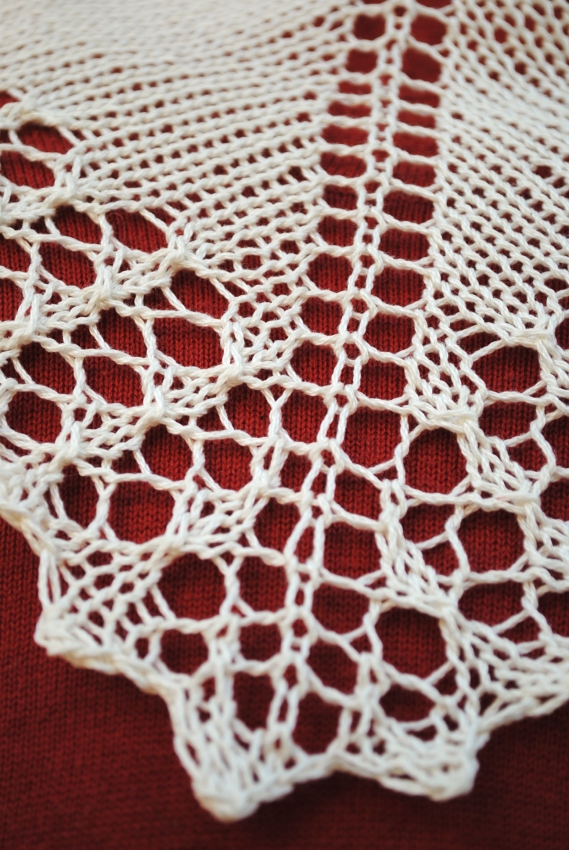 So I started knitting merrily along and decided that I wanted to knit a Crashing Waves with a huge lace portion, like I have done in the past by just modifying the depth of the pattern in either the body or the lace section. So I got started on the lace and since this was my umpteenth Crashing Waves, about 6 rows into the lace I decided I didn’t want to knit this shawl any more. I just wanted to be done with it. Yes, that is how many Crashing Waves I have knit- I have memorized that pattern and I’m a little sick of it. I’m sure you have all had that feeling – “I DO NOT want to kit this any more!” But I have to say- it’s still a great pattern, especially the first 8-10 times. Haha 🙂
