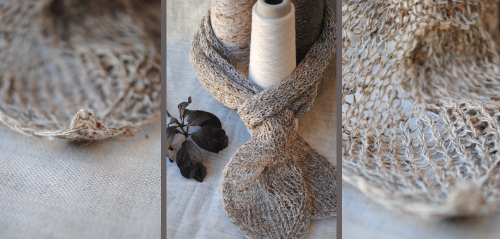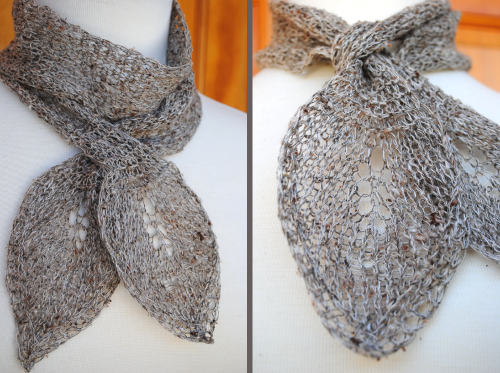 This version of the Loopy Leaves used three strands of Habu Textiles held together (all lace weights). You can use the recommended yarns in the pattern or choose your own three lace weight yarns or even use a fingering yarn. The idea here is to get an interesting texture and drape. I hope you enjoy knitting this as much as I did.