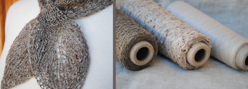 1/2 unit Habu Textiles N-66 Linen Stainless Steel (unit size: 1/2 oz, 83% linen, 17% stainless steel, 483 yards), shown in 1 White