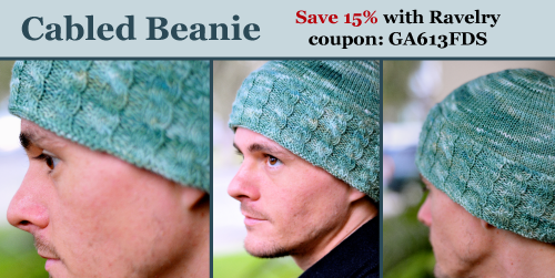 Are you ready for Father’s Day this year? Don’t fret! I’ve got three simple and fun patterns you can easily knit up before next Sunday…. and they just happen to be on sale on Ravelry now through Saturday, 06/15/13 (Pacific Time). Make sure to use the Ravelry coupon code: GA63FDS when you checkout. Save 15% on the following patterns: Cabled Beanie, Gregorio & Ribbed Beanie.