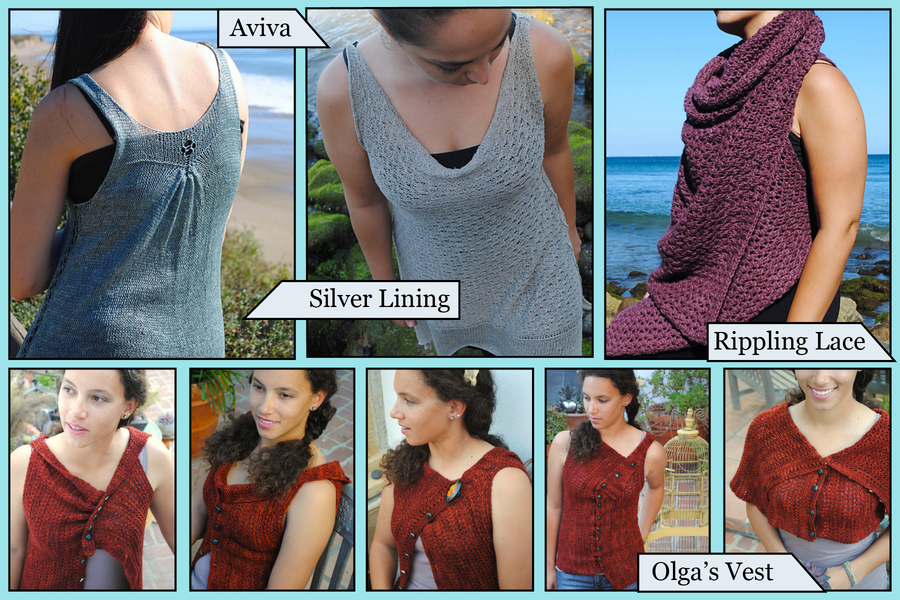 Time to vote for the next KAL. I thought we could do a spring/summer garment so that we aren’t boiling over when knitting this season. Make sure you cast your vote here (below)!!! Your options are: Aviva, Silver Lining, Rippling Lace & Olga’s Vest: